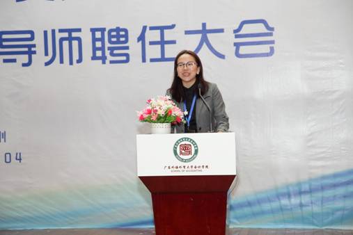 校外实践导师代表毕马威华振合伙人王洁女士表示:将尽己所能,运用好企业平台,发挥实践和阅历特长,协助学校共同教育好学生,培养出优秀的复合型人才,同时对同学们也寄予了厚望,提醒同学们“青春年华稍纵即逝,且行且珍惜”,为了梦想要坚持努力学习,并在挫折中更加坚强。