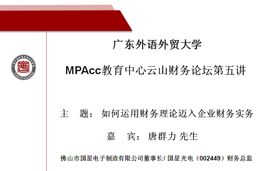唐群力,暨南大学会计学研究生毕业,现任上市公司国星光电(002449)财务总监、佛山市国星电子制造有限公司董事长。曾任广东广晟光电科技有限公司董事长、广东省中科宏微半导体设备有限公司董事长、广东省电子信息产业集团有限公司财务总监、佛山三水恒益火力发电厂有限公司财务总监、广州发展环保建材有限公司财务总监、上市公司广州发展(600098)总部高级财务主管等。曾在《审计与经济研究》等发表论文约十篇,主持省财厅二等奖课题一项。